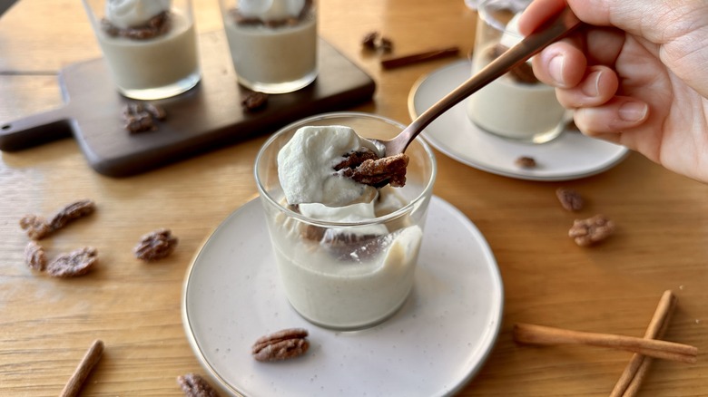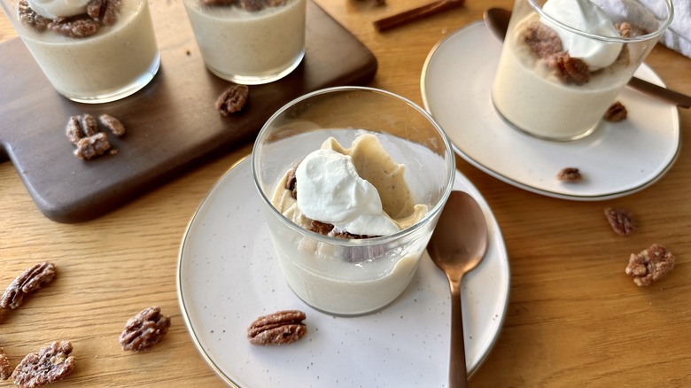 - Garnish each pudding with a sprinkle of remaining chai spice, pecans, and a dollop of whipped cream.