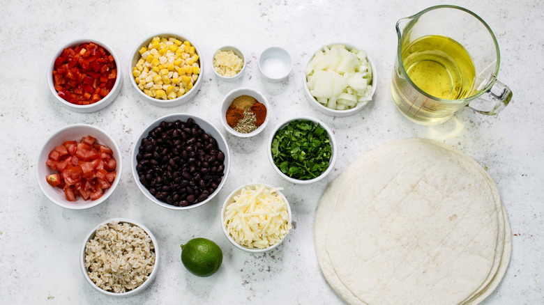 Gather the ingredients for these vegetarian black bean and corn chimichangas