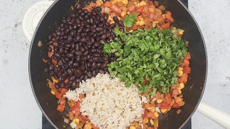 Step 4: Stir in the black beans, rice, and cilantro
