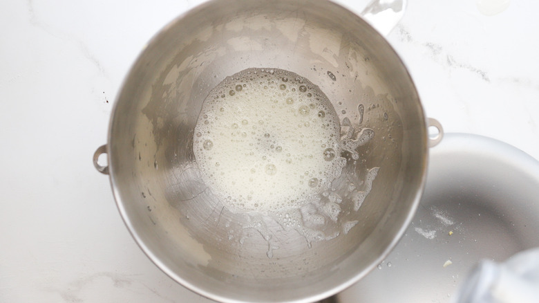 - In a separate mixing bowl, whip the egg whites using an electric mixer or whisk until they become frothy. Add the vanilla extract and granulated sugar, and continue to whip for an additional minute.