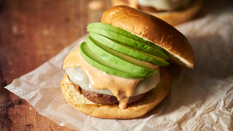When it comes to the burgers themselves, you'll want thick patties so the chipotles don't overpower the beef. The peppers are flavor-packed, so don't overdo it — Michelle McGlinn suggests four of the peppers to a quarter-pound of meat in our recipe, and you can reduce it to two peppers if you're sensitive to heat. For the sauce, blend mayonnaise with some of the peppers, along with lime juice for acidity and seasonings like paprika and chili powder for extra flavor. You could also go the route that McGlinn suggests and simply mix the adobo sauce into the mayonnaise without the peppers — the sauce will still pack a punch.