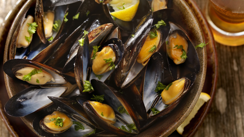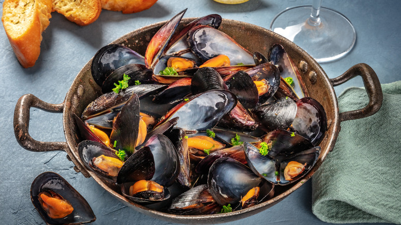 We've already mentioned the fact that mussels can have quite a mild flavor, even if they do offer a hint of that ocean brininess we love. However, that may not be enough to give you a delicious pot of mussels. Therefore, you need to think about what kind of liquid to cook your mussels in. When you're steaming mussels, the type of liquid you use plays a huge role in what the finished product ends up tasting like, so it's something you should think about just as much as you do the seafood.
