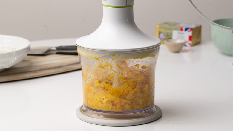 - Once cool, place the oranges in a food processor and pulse to finely chop them. Don't let them become completely puréed.