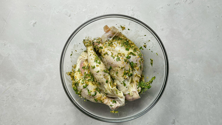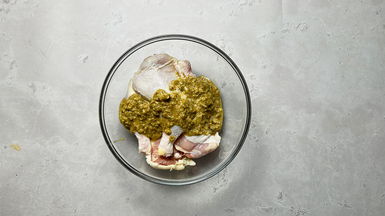 - Add cilantro and rub mixture into chicken. Seal or cover tightly and marinade overnight.