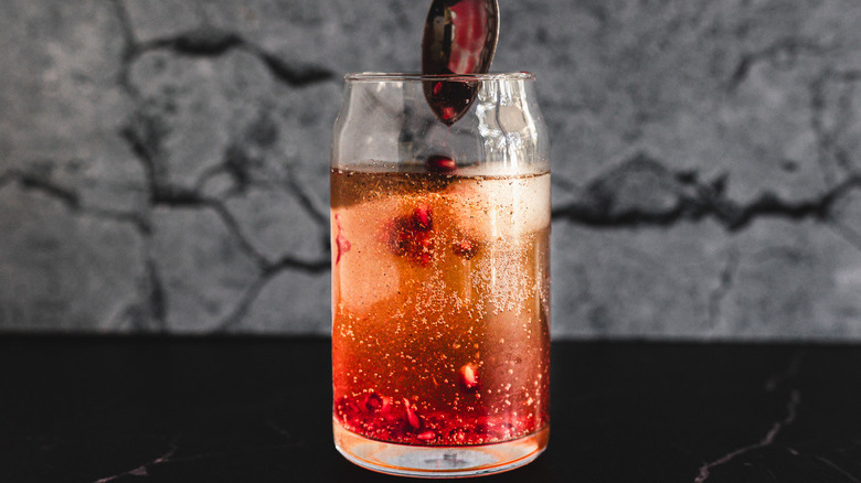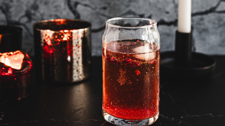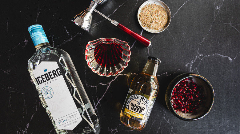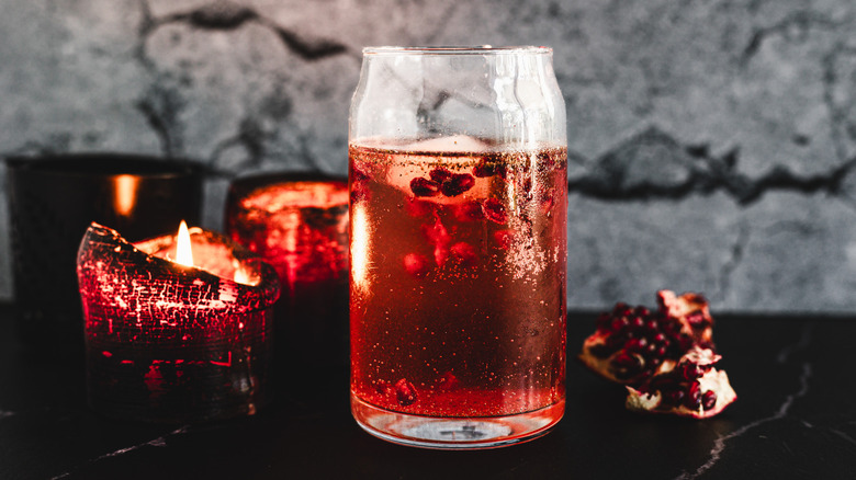 To get your guests a few steps closer to howling at the moon with delight, you'll need a few simple components that can be found in most well-stocked kitchen cabinets. First in the lineup is vodka, the spirit that gives this drink its neutral base. Next up, grenadine, lending its blood-red hue. To add a hint of fall flair, pumpkin spice enters the mix, infusing warmth and spice into every sip. For that signature zing, ginger beer brings its fizzy charm to the drink, while pomegranate seeds add eerie elegance, resembling floating eyeballs. With these select ingredients, you'll be able to conjure up a brew fit for even the most discerning of witches and warlocks.