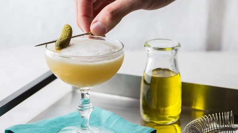 Pickle juice whiskey sour