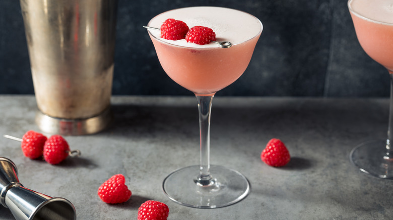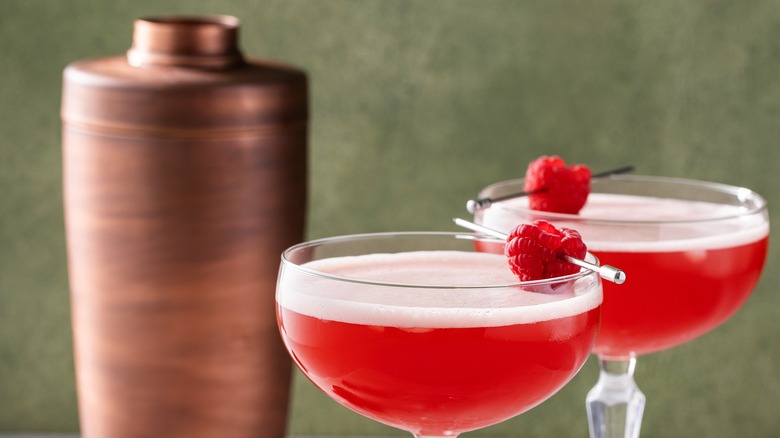 It's best to choose a dry gin when mixing this drink, or you can opt to use half gin and half dry vermouth. Also, don't worry about taking time to make a homemade raspberry simple syrup. For this recipe, you can cut corners and opt for a store-bought version without drastically affecting the drink's outcome. Just don't overlook the importance of adding fresh raspberries as a garnish. The sugary, sour bite of the fresh fruit really adds to the overall experience.