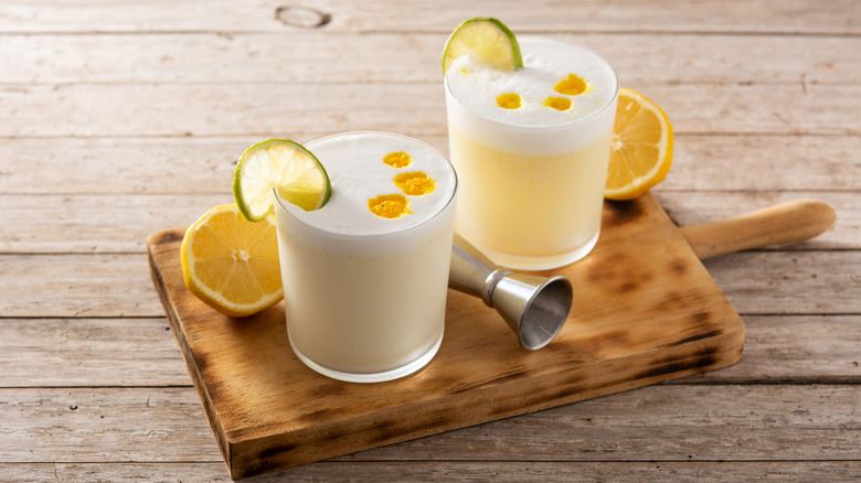 In this case, the classic pisco sour uses equal parts lemon and lime juice, angostura bitters, simple syrup, and egg white to help the whole thing go down smoothly. Just keep in mind that a single serving of this cocktail uses 2 ounces of pisco, so if you're used to drinks with just an ounce of alcohol, it might strike you as strong. Pair it with tropical fruit or citrus-marinated seafood to help take an edge off the drink as you sip.