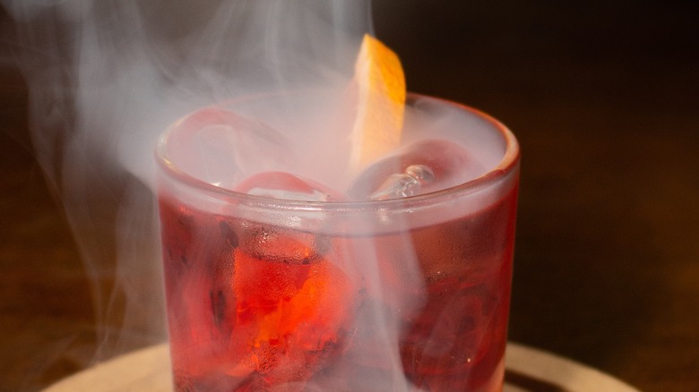 There's a point with some cocktail recipes where you may wonder if the creator has "jumped the shark," so to speak, and taken the recipe too far. That conclusion was up for debate when a TikTok user turned a classic negroni into a smoked rosemary negroni sour. There's no doubt that the smoking version (with a lovely head of egg white foam) certainly looks fancier than the standard negroni of gin, Campari, and sweet vermouth. Still, some commenters questioned whether the added elements took the cocktail too far.