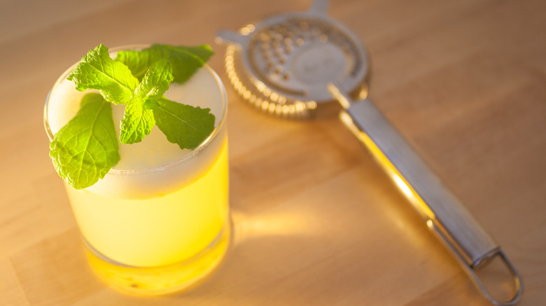 A standard whiskey sour is certainly potent enough to hit you in the gut and warm you up on the coldest of nights, but if you're looking to spice it up a little, you're in for a treat with this apple ginger whiskey sour. The combination of apple, ginger, and (of course) lemon juice all work together to deliver a decidedly seasonal flavor that's ideally enjoyed during the late fall and early winter months. Just keep in mind the recipe calls for juice extracted from fresh ginger root, so you'll need access to a juicer to get the most out of the recipe.