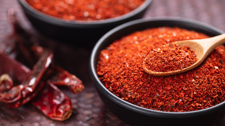 Chilies and hot peppers can add another layer of flavor, providing a hint of spicy heat right on the heels of the sugary tart cranberries, so it's worth mixing them into canned cranberry sauce to amp up your holiday meal. You can keep it tame or boost the heat level depending on what type of chilies and peppers you choose to use and if you deseed them or not. The sky's the limit when it comes to what type of spicy ingredients you can add to cranberry sauce – everything from jalapeños, cayenne pepper, and crushed red chili flakes to ghost peppers and Carolina reapers (if you dare).