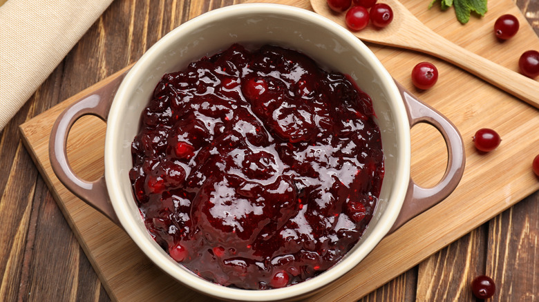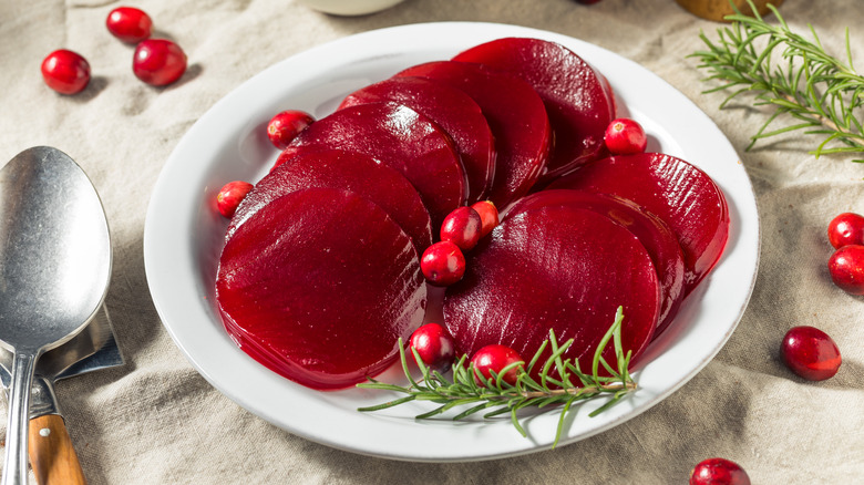 Cranberry sauce is a nostalgic dish popular during the holidays, from Thanksgiving to Christmas. This festive side brings a spot of bright, cheery red to the table that dresses up a spread like no other. While cranberry sauce is a relatively simple dish to prepare, it's likely one of many other dishes that need to be cooked for a holiday feast. But don't be tempted to omit it from your menu, as a holiday spread without tangy cranberry sauce is an incomplete meal. Rather, spend your time and energy making more laborious dishes and consider serving canned cranberry sauce instead.