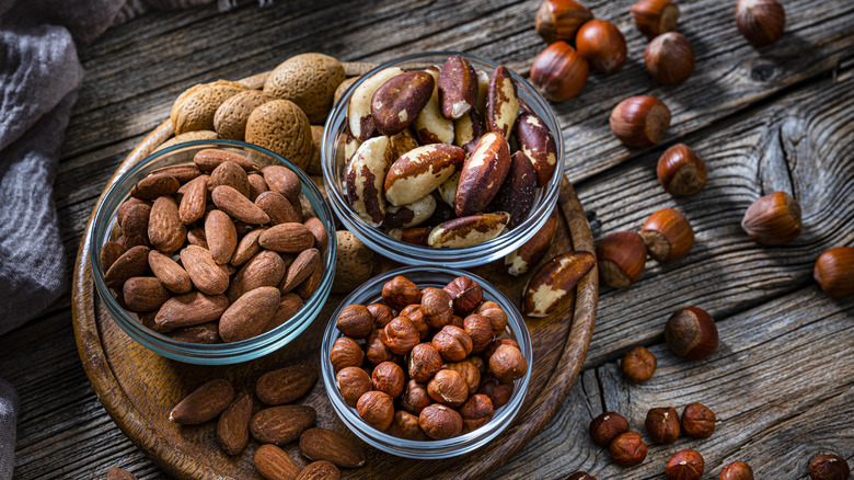 You can chop any meaty nut — pecans, walnuts, pine nuts, hazelnuts, for example — and mix it into your cranberry sauce for a textured, flavorful side dish. Adding an element of crunch to canned cranberry sauce will enhance it while bringing an extra element to your plate that might be missing. And since many of us try to prevent overeating during the holidays, the added nuts are more filling and require more chewing, so you'll feel fuller and more satiated. We prefer roasting nuts to accentuate their nutty flavor before adding them to cranberry sauce, but raw or candied nuts are delicious, too. It all comes down to personal tastes.