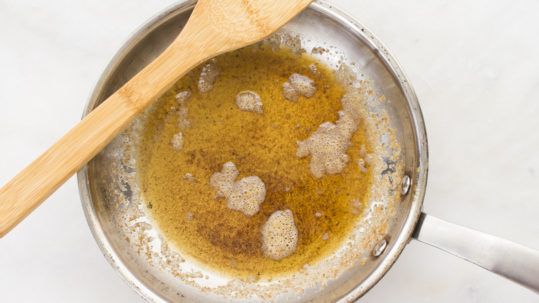 If you've never experienced the magic that is brown butter, you're missing out on one of the easiest ways to amp up ordinary dishes into something special. When you melt butter on the stovetop to the point that it turns brown — not burnt, and not quite caramelized — a nifty chemical process called the Maillard reaction takes place. This is what gives brown butter its notable hue, and the process of melting down the butter also gives it a notable nutty flavor.