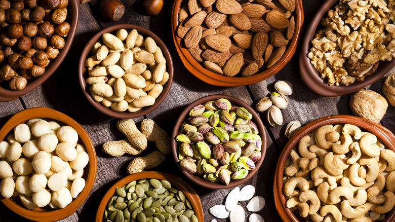Carrot cake is unique in that it can house nuts without veering too far from the desired flavor profile. Though you likely wouldn't chop up walnuts and throw them into a vanilla cake batter, carrot cake is spicy and earthy enough to handle such an addition. And who says you have to stop with the cake batter itself? Go ahead and toss some chopped walnuts or pecans atop your frosted cake for a simple decoration that conveniently pairs oh-so-well with cream cheese frosting.