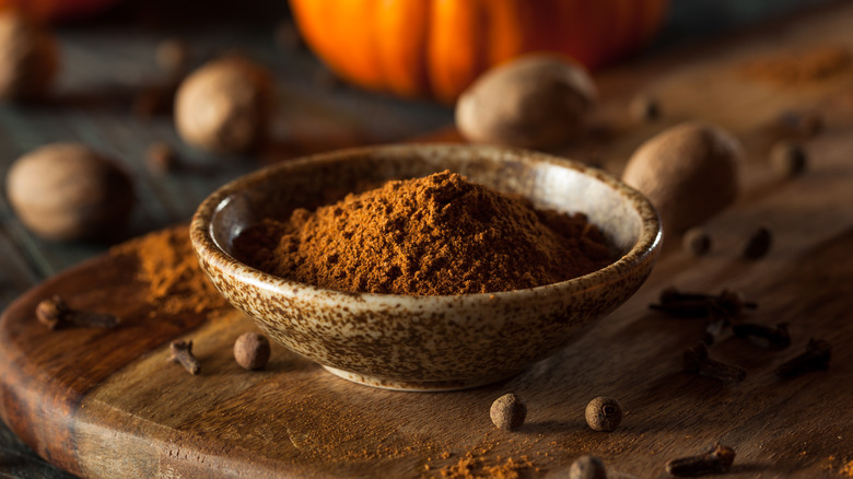 Carrot cake always includes some type of spice, because without a little bit of cinnamon or a sprinkle of ginger, it's just not carrot cake. Indeed, spices are nearly as crucial to carrot cake as the carrots themselves, but if you're looking to switch up your spice inclusions and perhaps want to add a fall flair, then pumpkin pie spice is the way to go.