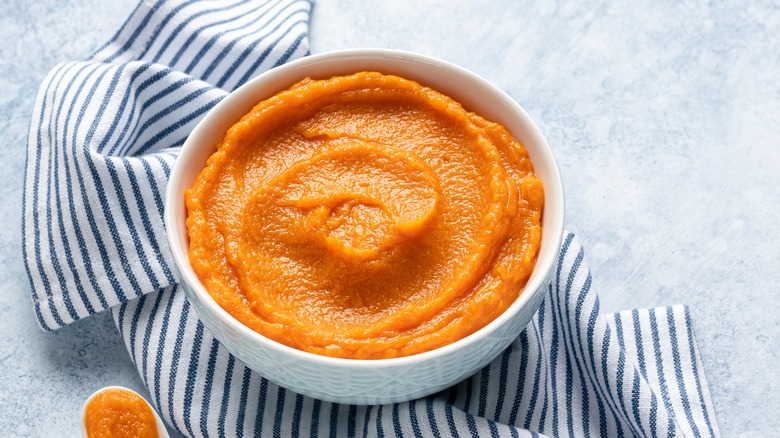 On its own, pumpkin puree doesn't have a whole lot of flavor to offer, though if there is one food that closely matches its flavor profile, that would be carrots. Naturally, pumpkin and carrots belong in a dessert together, and even more so when it's one loaded with spices. By adding pumpkin puree to your next carrot cake, you can give the year-round dessert an effortless fall flair without altering the flavors or recipe too much.