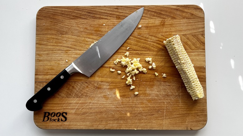 Cut the kernels from the corn and transfer to a bowl (you should have a heaping cup of corn kernels).