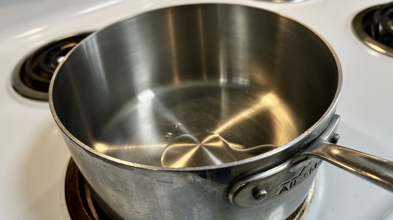 - Heat vegetable oil in a large saucepan over medium-low heat until shimmering.