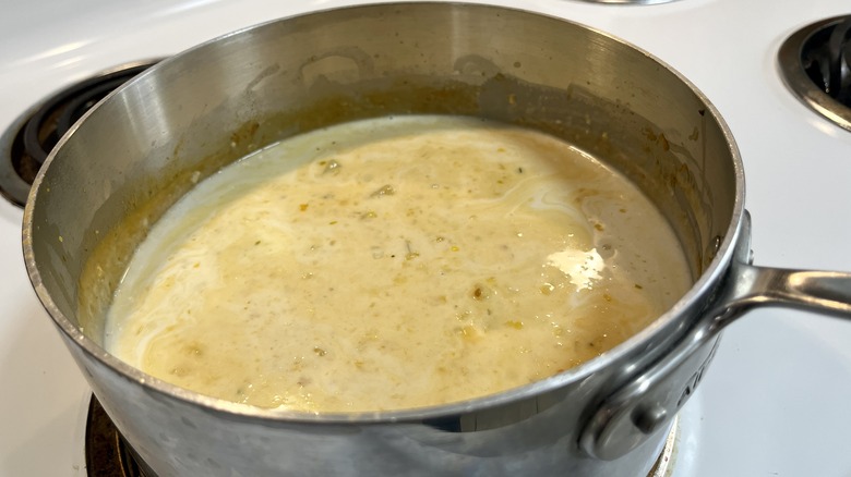 If you have leftover chowder, Le Moing recommends storing it "in an airtight container in the refrigerator for 3-4 days or in the freezer for up to 3 months." That being said, results can vary after the soup has spent some time in the freezer. "Soups with milk or cream can separate when defrosted and reheated. Non-dairy milk, like coconut milk, will hold up better but won't have the same consistency when defrosted." If you're planning on prepping extra soup to freeze for another occasion, she suggests, "What you could do in this recipe is freeze the soup BEFORE adding in the coconut cream." Otherwise, she comments, "But I doubt you'll have leftovers to freeze."