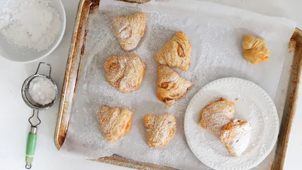 After you spoon in your pastry cream, you'll seal the edges of the dough together by gently pressing them together. It's crucial to ensure your lobster tails are well sealed, or you could lose that delicious filling. Maroney demonstrates sealing the edges using her thumb and index finger; this gives her a precise movement to close up her pastry. Before you bake off your lobster tails, double-check that there are no holes or leakage from any of your pastries. If you notice any small gaps, press your edges one more time to seal them as best as possible.