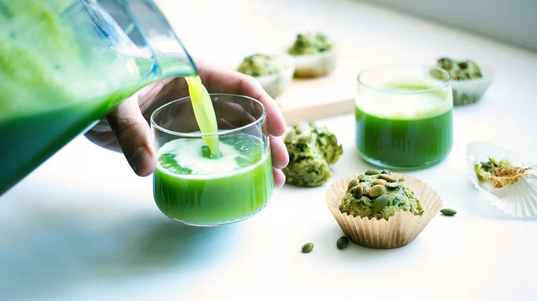 Begin by preparing the green juice. Utilizing the gathered, pressed pulp along with a few fundamental ingredients, you'll concoct a vibrant green batter. These muffins are brimming with all the nutritious goodness typically discarded. We love adding some pepitas right on top for an extra bit of crunch.