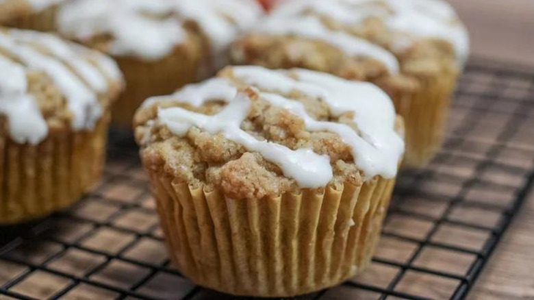 Undeniably, pumpkin-centric creations reign supreme in the realm of fall muffins, and these particular ones are a prime example. The subtle sweet garnish on top renders them versatile enough for both dessert and breakfast indulgences.