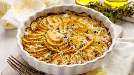 Preventing watery scalloped potatoes begins during the preparation stage. First, it's essential to choose the right type of potatoes. Go for starchy varieties, such as russets, rather than waxy types, such as red potatoes. Starchy potatoes are less watery, contributing to a thicker, creamier dish. Additionally, take the time to drain and pat the potato slices dry prior to assembly in order to remove excess moisture that could compromise the consistency of the dish.