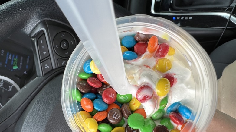 Moving forward, McFlurries will be served with the same spoon currently used with McDonald's sundaes, a smaller black spoon, reports Nation's Restaurant News. Not only will the spoon swap be a change for McFlurry fans, but it'll be an even larger adjustment for employees. That square, hollow handle on the old McFlurry spoon served a functional purpose (and it wasn't a straw, as some fans theorized). The handle was attached to an arm on the McFlurry-making machine and acted as a spindle for mixing all those M&Ms and other candies into the soft serve. According to an official press release from McDonald's, this nationwide shift will entail making McFlurries with reusable spindles that can be removed for cleaning while a new one takes its place. This simple spoon swap minimizes the chain's plastic use while minimizing changes to the McFlurry-eating experience for foodies.