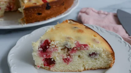 This cranberry ricotta cake is sweet, moist, and perfectly fall-themed.