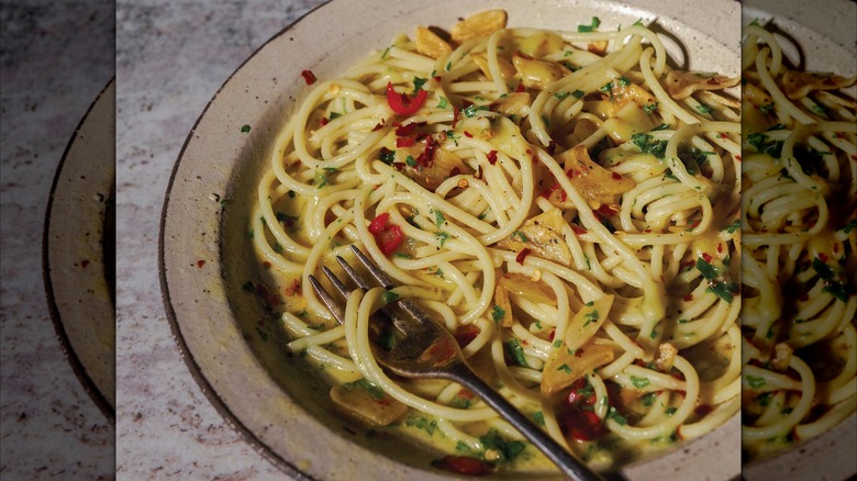 There are a lot of quick recipes in the book, especially a lot of the pasta recipes where the sauce comes together at the same time that it takes to boil the pasta, like my Aglio E Olio. I also like recipes that might not be as quick, but that have a lot of inactive time — [for example,] making chicken soup or braising. Once you do the initial prep, it might cook for eight hours, but you don't have to do anything [during that time]. I try not to rush it. [In the book], I try to have a mix of quick recipes and ones that might require a little bit more love.