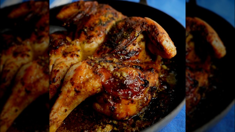 I like to add a little bit of sweetness to a roast chicken, whether it's brown sugar or maple. It brings out the savoriness and balances everything really well, but [those do] have a tendency to burn. If you start [the chicken] on high heat and cook it halfway with just salt and let everything get crispy, then you can lower the heat and add everything else to season it. That's a method I use in the book that is a foolproof way to avoid burning while also getting all the flavors.