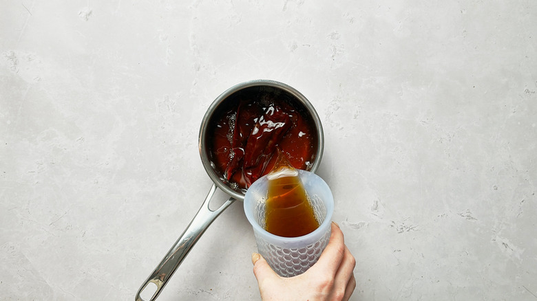 Pour the guajillo sauce over the pork shoulder in the slow cooker.