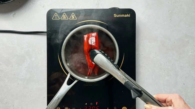 - Bring to a simmer and cook until peppers are soft, about 10 minutes. Let cool while preparing the pork.