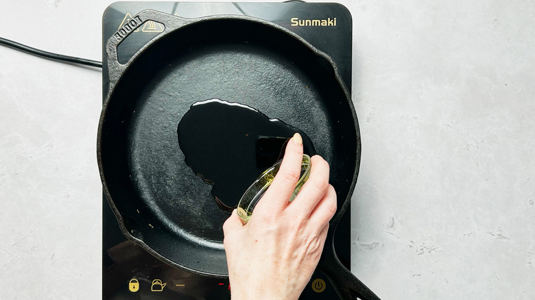 - Once hot, add the pork shoulder and sear until browned on each side, about 2 minutes per side.