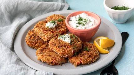 These crunchy, satisfying salmon patties are packed with protein, enhanced with seasoning, and encrusted with panko breadcrumbs. When paired with a creamy homemade dip flavored with dill and lemon, you may feel like you're sitting down for service at a Michelin-starred restaurant and forget about the numbers in your bank account. Whether you serve this dish with crusty bread or a seasonal salad, it will take a keen palate to pinpoint the origins of the salmon included in the recipe.