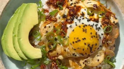 In a recent viral TikTok video, creator @Haileecatalano demonstrates an ingenious process that fries eggs and garlic chips simultaneously. She adds thinly sliced garlic chips to a frying pan with oil and once the garlic starts to crisp up, she cracks an egg into the pan. By the time the fried egg sets, the garlic chips have created a crunchy brown foundation. On top off adding the perfect crunch to each bite, the garlic slices infuse flavor into the oil while they cook, creating a richly flavored frying oil for the egg.