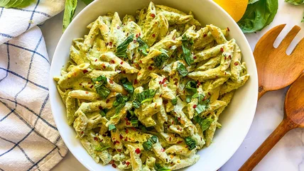 You don't even have to stick to the straightforward basil-and-nut-based pesto. You could also integrate tofu into a sun-dried tomato pesto, a citrus pesto, or any other pesto to transform it into an ultra-creamy vegan sauce. If you're not feeling super fancy, don't worry. This pesto is so flavorful on its own that, once added to the pasta, you don't even really need anything else. You could even make the tofu pesto ahead of time to make it easier for yourself on a busy weeknight.
