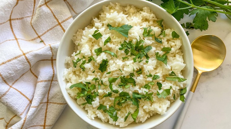 Long-grain, white rice is the standard Brazilian staple, but the method and ingredients also work with brown rice. Garlic and onions infuse the rice with caramelized savoriness while the olive oil provides earthiness. If you want to go the extra mile, you can use boiled broth instead of water. Top the rice with minced parsley (commonly called cheiro verde or "green smell" in Portuguese) and a squeeze of fresh lime juice for even more complexity.