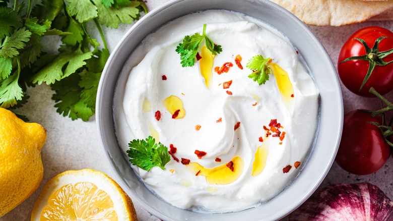 Hummus is arguably one of the most popular dips to serve at parties, and for good reason. It pairs particularly well with baked pita chips or raw vegetables. And, because of its nutty flavor, hummus is an ideal spread for healthy and light veggie-based sandwiches. While the idea of a sandwich filled with only greens may seem boring and dry, adding a dollop of this spread is guaranteed to elevate even the dullest of vegetables into something truly tasty. Use the hummus for a bold, earthy undertone, add cucumbers for freshness, mashed avocado for texture, spring greens and bell peppers for crunch, and thinly sliced red onions for just the right hint of spice.