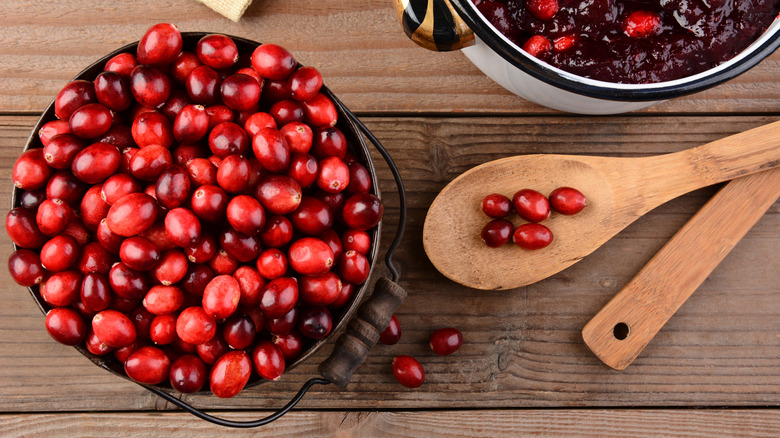 If you're short on time, dried, sweetened cranberries will supply those complementary tart and sweet flavors along with a chewy, gummy consistency. However, if you simmer fresh or frozen cranberries in simple syrup, the type of sweetener you use will add depth to the cranberries' palate and open up more options for complementary salad ingredients. For example, maple-sweetened cranberries would pair well with bacon bits, bitter walnuts, and funky blue cheese. And floral honey-sweetened cranberries would taste delicious with salty feta, julienned carrots, and toasted pepitas.