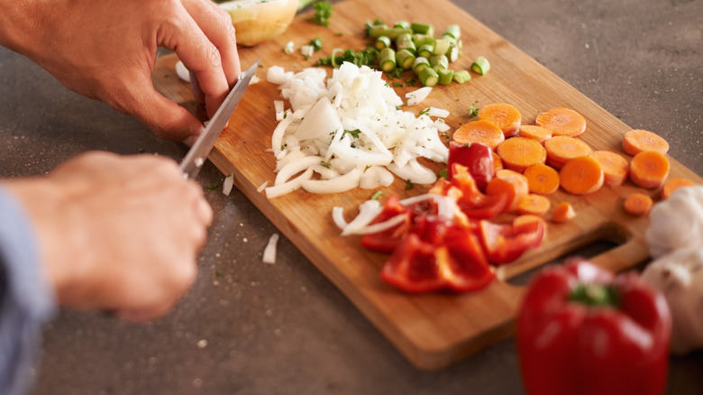 Much like any other ingredient, there's more than one way to utilize carrots for your chili. Cutting it into bite-sized chunks to simmer along with the meat, beans, and other veggies is, of course, the foolproof route. Make sure they're sizable enough that they won't turn mushy during the prolonged cooking time. That said, a carrot puree is a fantastic choice for those who want to directly infuse the sweetness right into the chili. This way, the flavors meld into one another more seamlessly, with an extra thick texture as a bonus. Alternatively, you can also go for carrot juice. Even though it won't amp up the texture, you'll still get that lingering sweetness embedded into every drop of the broth. And if you don't mind a bit of extra work, whip up a mirepoix — the French seasoning base made from carrots, celery, and onion — for a more sophisticated, multi-dimensional chili.