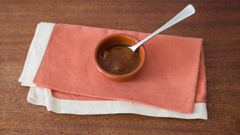 Amba sauce is a pickled mango condiment originating from the historical Jewish cuisine of Baghdad in the 1800s. As the Jewish population of Iraq relocated, the sauce became a Middle Eastern staple, including in Israel. It's now available in many parts of the globe, especially when served over Middle Eastern or Israeli street food like sabich sandwiches. Besides pickled mango, amba contains vinegar and a mix of spices, which can include cumin, mustard, fenugreek, and cayenne pepper. The complex flavor from the mixture of sweet, spicy, and tangy ingredients is captivating.