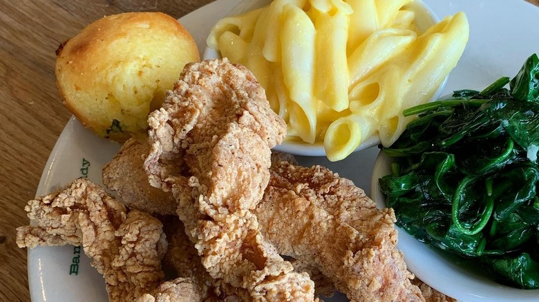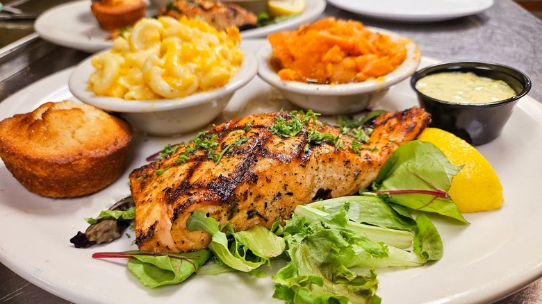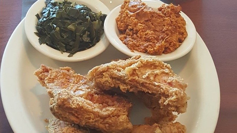 The "1947 Old Fashion Fried Chicken" is still an anchor of the menu, alongside standards like meatloaf, fried catfish, shrimp and grits, barbecue chicken, pulled pork, and ribs. One can also find lamb chops and salmon, should they want to veer from the classics. A healthy selection of classic sides, also available as a four-choice vegetable plate (which one should never pass up), includes the standard candied yams, rice and gravy, black-eyed peas, and collards. Desserts, although slim in selection, are worth exploring for the peach cobbler alone.