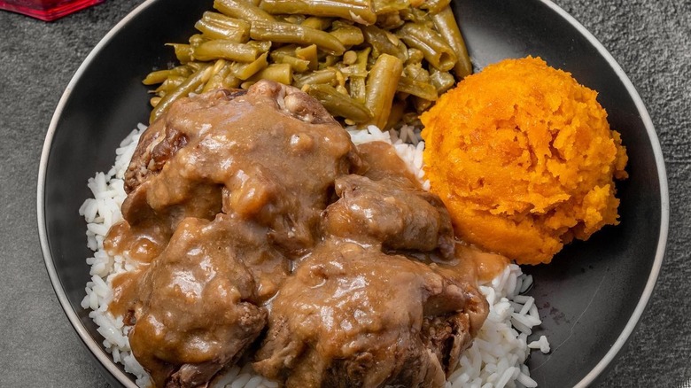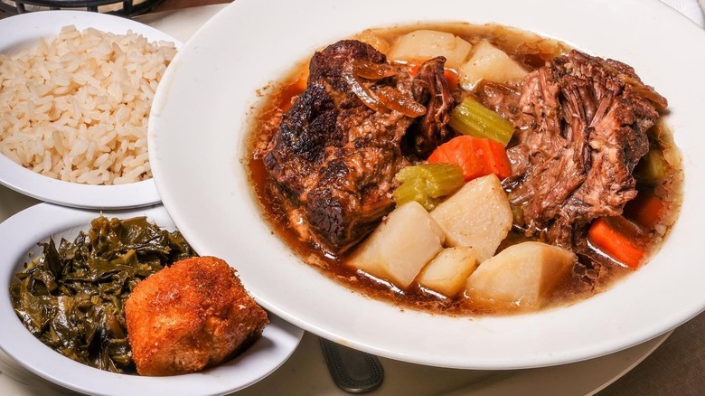 From there, you can wade through the pool of sides, which is a deep dive into bygone years. Cottage cheese and peaches, tomato aspic, and Waldorf Salad sit alongside the expected staples of mashed potatoes and gravy, collards, rutabagas, mac and cheese, and the like. That's not a bad thing; these dishes need preserving, and what better location to do that?