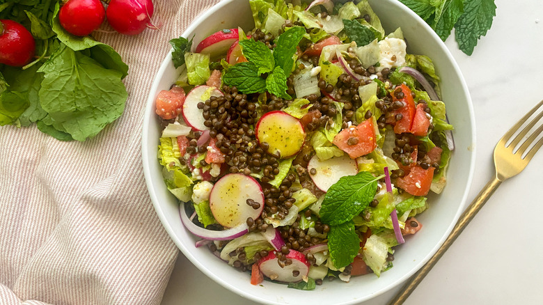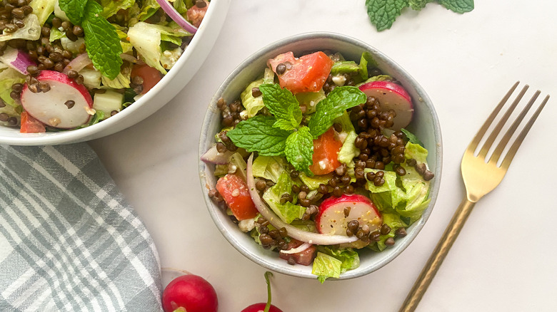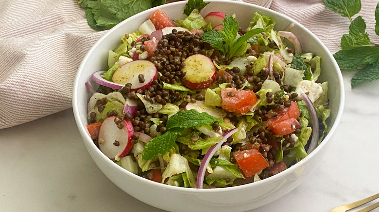 Lentil Fattoush Salad With Mint Dressing Recipe