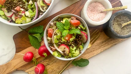 There's something extremely satisfying about making a fresh salad bursting with crisp and crunchy produce and a fresh herb dressing. This lentil fattoush salad with mint dressing is a twist on the traditional Middle Eastern salad, which is known for its fresh and vibrant flavors. The addition of lentils here makes this salad perfect for a meal or as a hearty side dish.