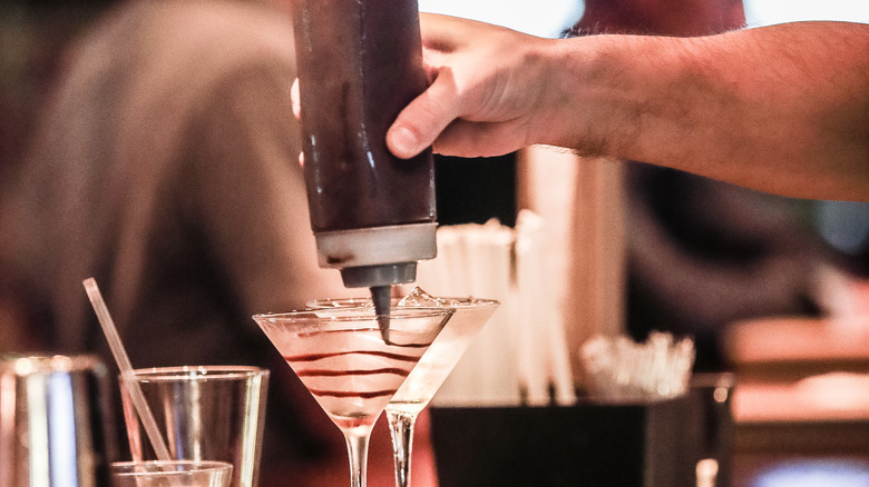 This modification also allows for a lot of playfulness, as you will get different results depending on what kind of chocolate sauce you choose to use. Dark chocolate sauce will produce the most intense flavor, while milk chocolate is more approachable. White chocolate, which does not contain any cocoa solids, won't do much to add complexity to the drink, but it can be a sweet and visually stunning addition thanks to its contrasting color. Don't forget seasonal twists — a peppermint chocolate sauce will transform your espresso martini into the perfect winter aperitif, while a spicy chipotle chocolate sauce is the perfect way to heat the drink in warmer months.