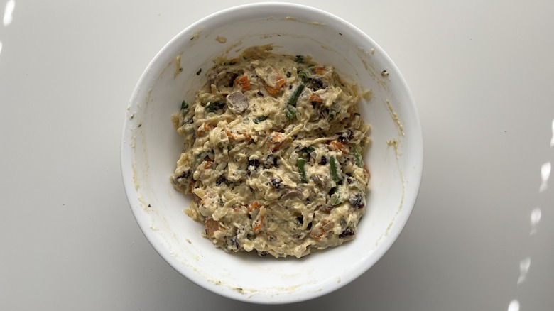 It's possible that other leftovers could work in this recipe, too. You could try using leftover pre-cooked green beans and sweet potatoes, while broth made from turkey bones (which is the best way to use them) could be subbed in for the chicken broth called for here. Cranberry sauce can't really take the place of the craisins Le Moing favors as it has a completely different consistency, but you could always serve it on the side or dolloped on top of a slice of Thanksgiving-in-a-loaf bread.