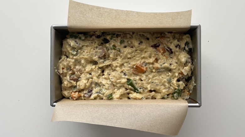 Pour into the prepared loaf pan.